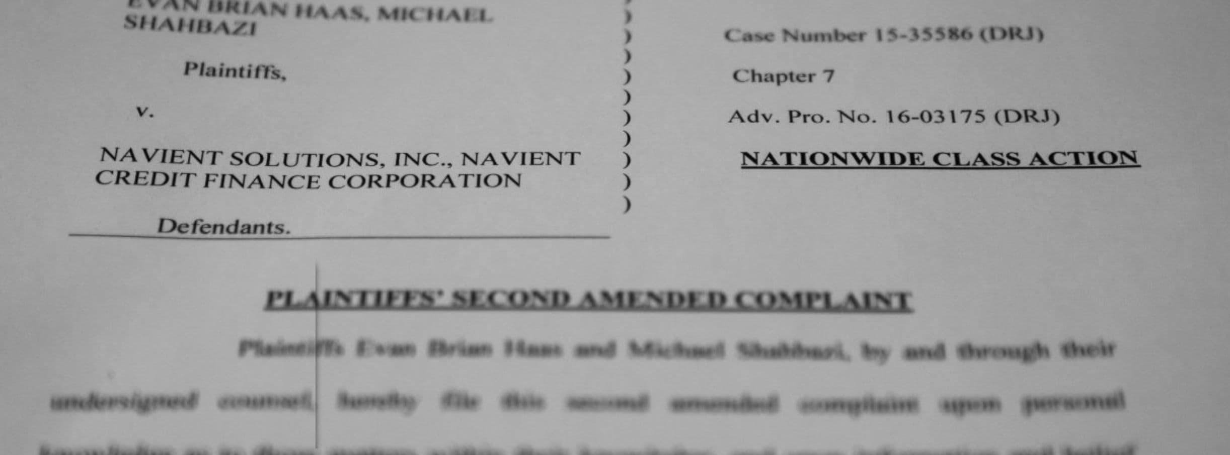 Note: An earlier version of this lawsuit was filed under the name Evan Brian Haas, Michael Shahbazi, et al. v. Navient Solutions, LLC and Navient Credit Finance Corporation.